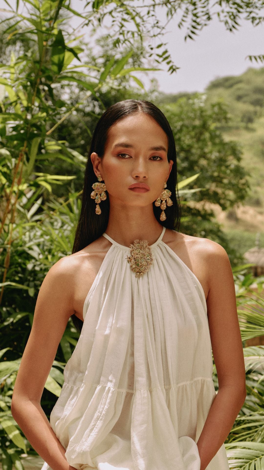 Deepa Gurnani epitomises luxury in handcrafted jewellery, renowned for its exquisite, hand-embroidered designs by skilled artisans. Each statement piece, crafted with the finest materials, showcases intricate detailing and opulent aesthetics.