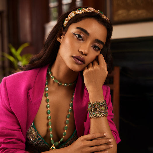 Model wearing Deepa Gurnani Luni bracelet