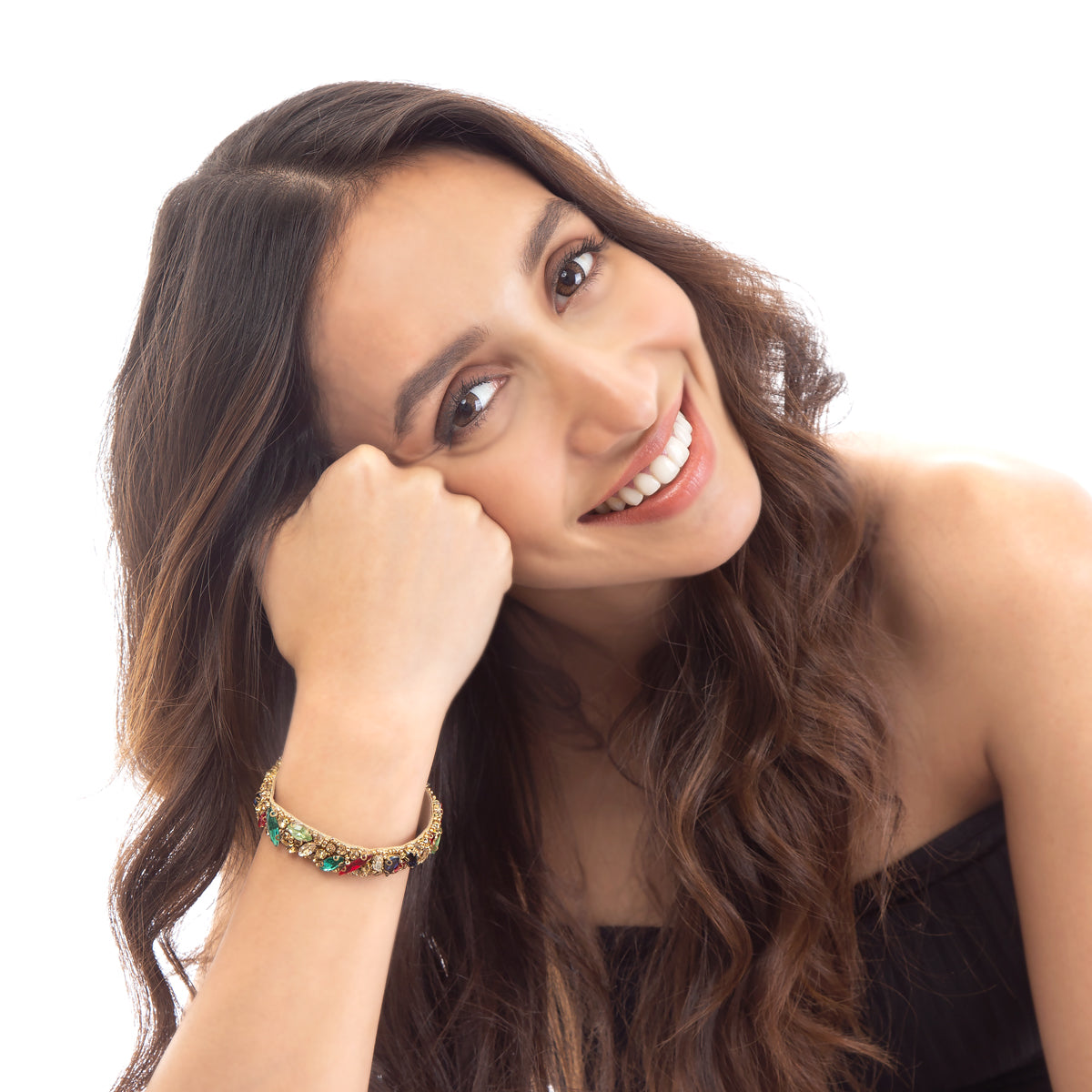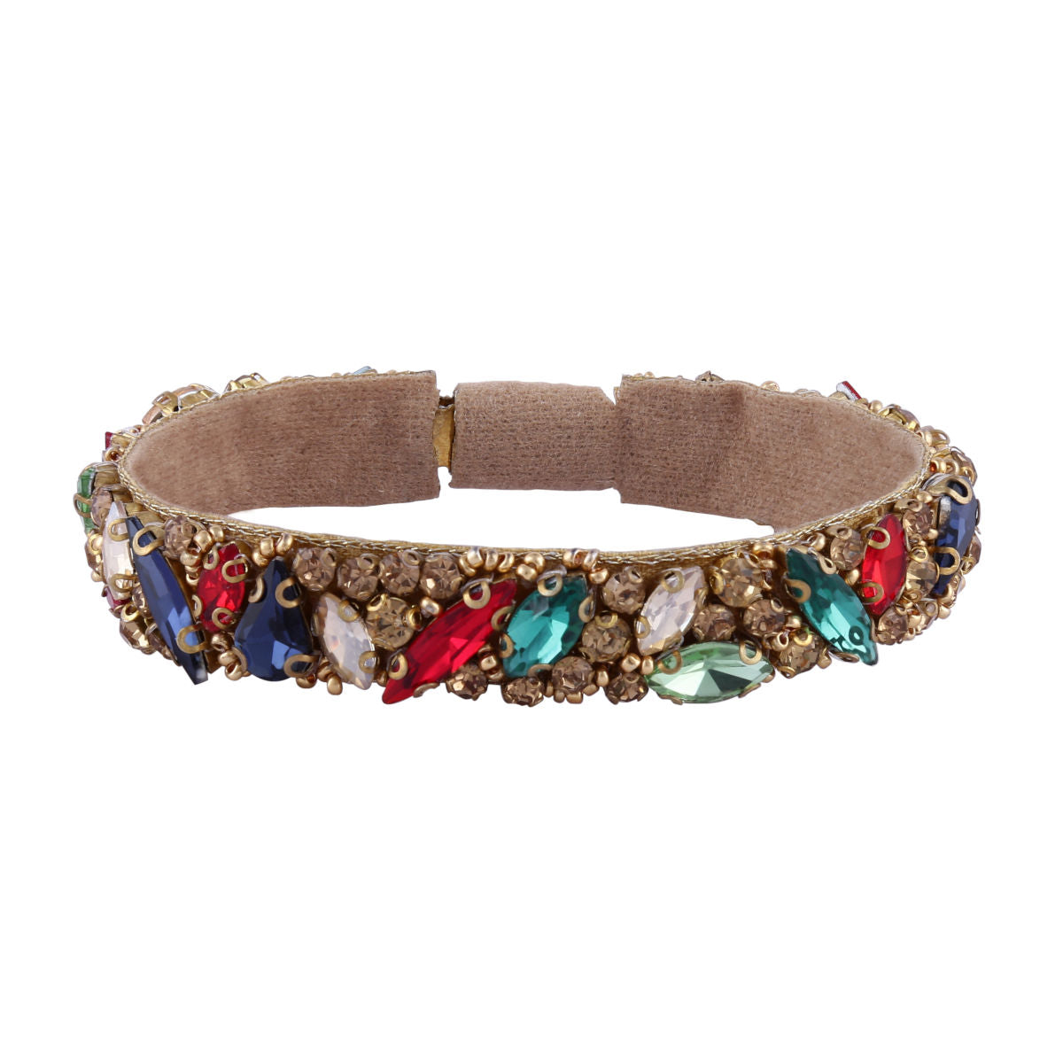 Round and marquise-cut crystals nestled in with shiny beads glam up an everyday cuff backed by soft lambskin suede.