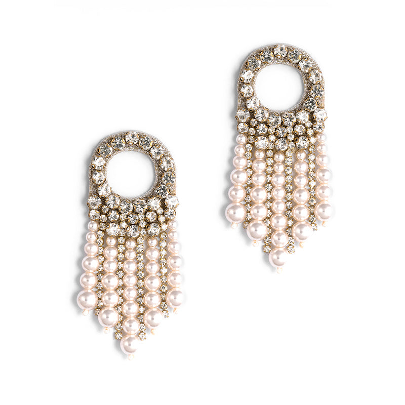 Bubble over in shine with swaying drop earrings brimming with faux pearls and crystals.